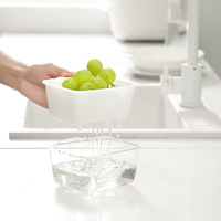 Cesta de drenaje de doble capa rectangular ecológica para el hogar, tapa de plástico, cesta de almacenamiento para clasificación de frutas